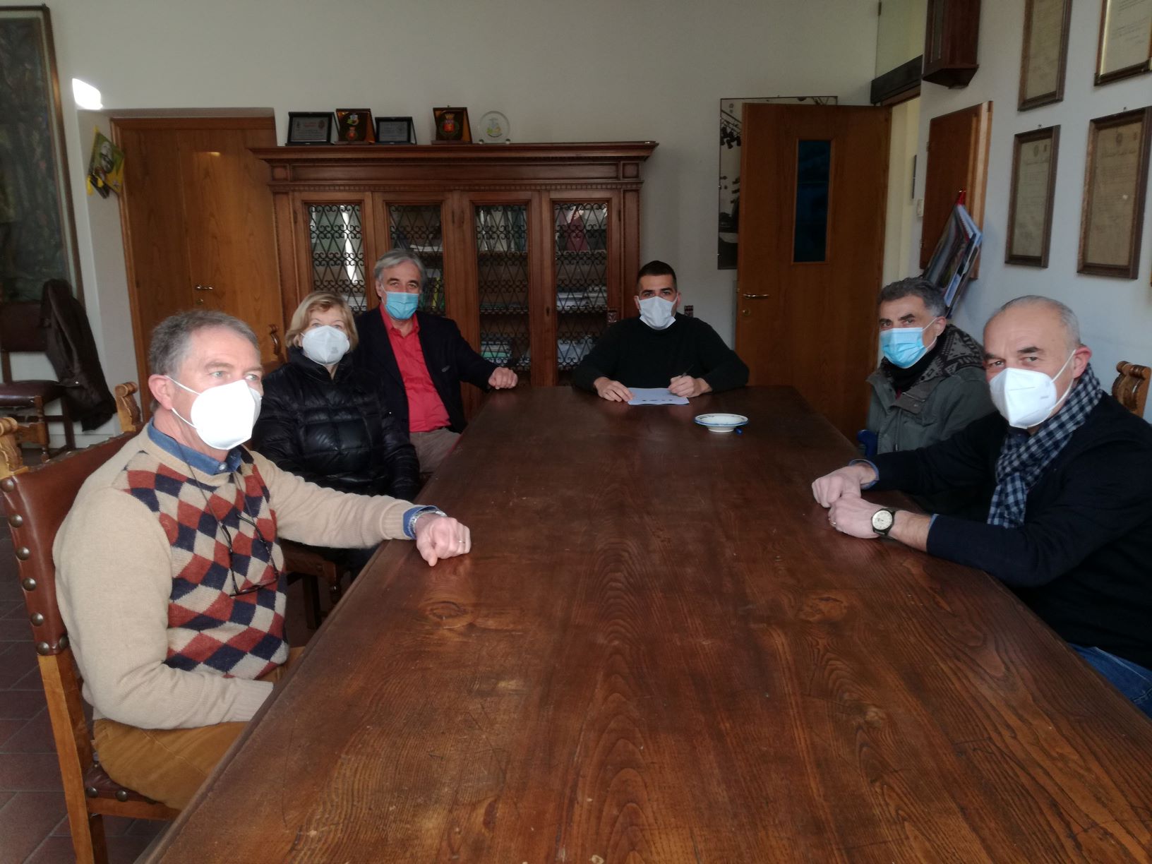 In foto: da sinistra Flavio Rugi, Rossana Bottari e Gianfranco Maroni (Spi Cgil), il sindaco David Bussagli, Giuseppe Sottile (Fnp Cisl), Simone Pizzichi (Cgil Siena).