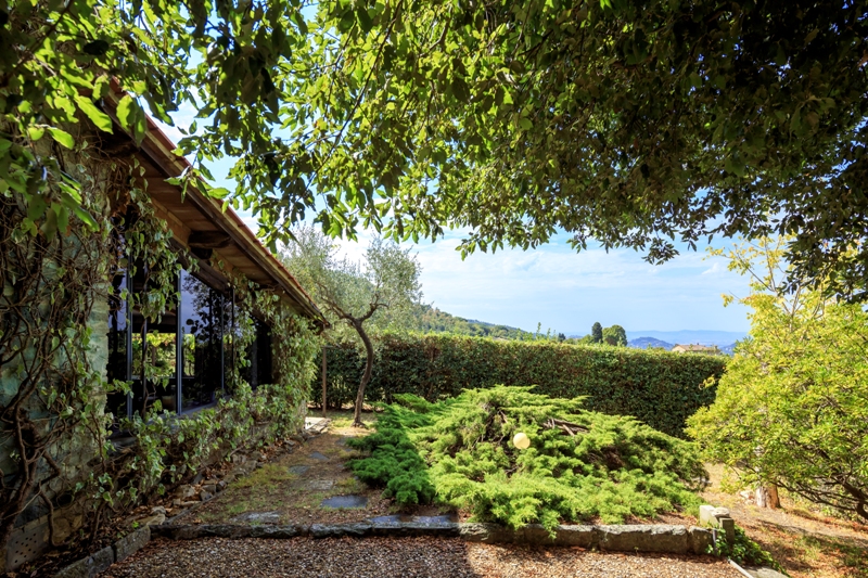 Completano la proprietà l’Atelier (60 mq ca.), una pool house, una resede pavimentata carrabile nella parte posteriore della villa e uno splendido giardino di 2000 mq ca. caratterizzato da piante plasmate nella forma dall'intervento dell'artista.