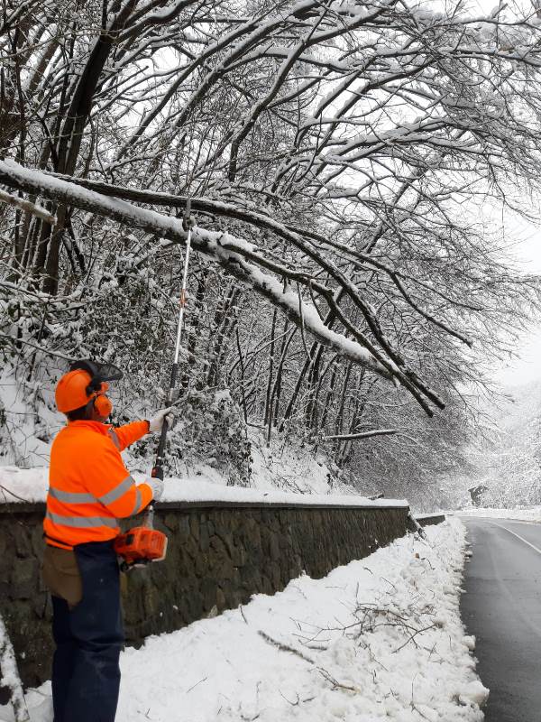 Proseguono con cinque squadre gli interventi di messa in sicurezza degli alberi resi pericolanti dalla neve