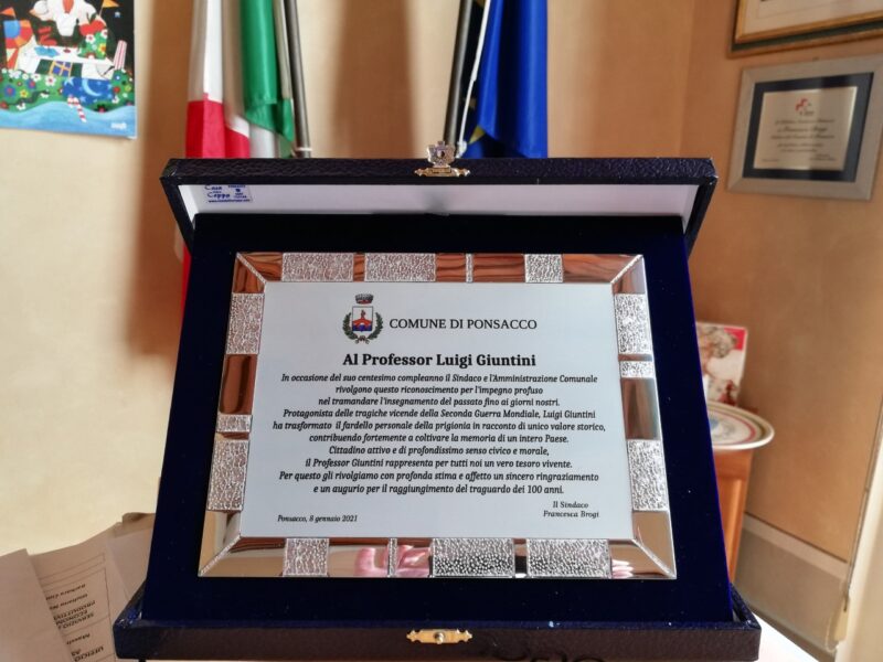 In occasione del suo centesimo compleanno il Sindaco e l’Amministrazione Comunale rivolgono questo riconoscimento per l’impegno profuso nel tramandare l’insegnamento del passato fino ai giorni nostri. Protagonista delle tragiche vicende della Seconda Guerra Mondiale, Luigi Giuntini ha trasformato il fardello personale della prigionia in racconto di unico valore storico, contribuendo fortemente a coltivare la memoria di un intero Paese. Cittadino attivo e di profondissimo senso civico e morale, il Professor Giuntini rappresenta per tutti noi un vero tesoro vivente. Per questo gli rivolgiamo con profonda stima e affetto un sincero ringraziamento e un augurio per il raggiungimento del traguardo dei 100 anni”.