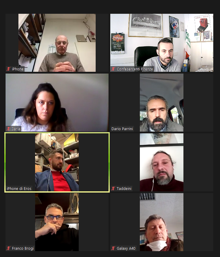Oltre al Presidente della commissione affari costituzionali al Senato ha partecipato alla videoconferenza la presidenza Confesercenti Empolese-Valdelsa al completo: Ilaria Scarselli (Presidente Confesercenti Empolese-Valdelsa), Marco Carpignani (presidente Confesercenti Empoli), Franco Brogi (presidente Fiepet), Enzo Nigi (presidente Fismo), Eros Condelli (Confesercenti Empoli), Luca Taddeini (presidente Anva).