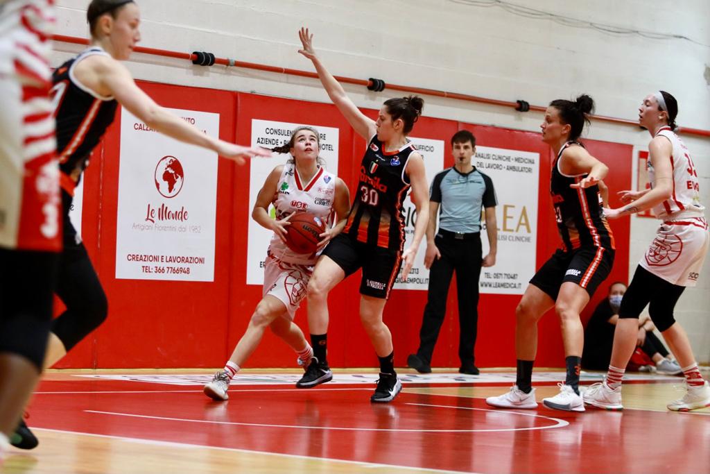 La squadra di coach Cioni regge l’urto fino a metà partita, salvo poi rientrare dallo spogliatoio e vedere progressivamente scappare la avversarie fino al finale. Contro la squadra con l’ultimo scudetto assegnato sul petto e con la miglior difesa del campionato, l’Use Rosa fatica soprattutto sotto canestro, accusando il primo passaggio a vuoto stagionale di Mathias e la pesante situazione falli che limita Premasunac, oltre ovviamente all’indubbio valore delle avversarie.
