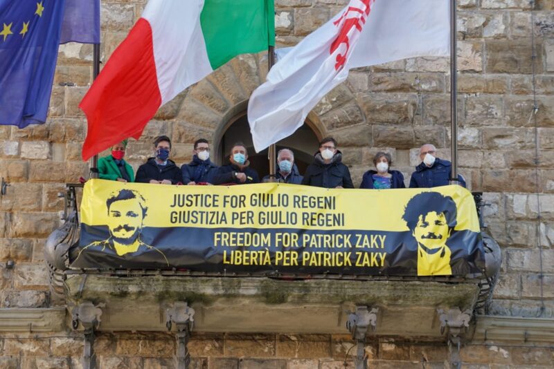 Uno striscione in memoria di Giulio Regeni e per chiedere la liberazione di Patrik Zaki è stato steso stamani fuori dal balconcino di Palazzo Vecchio in piazza della Signoria a Firenze. Erano presenti il sindaco Dario Nardella, il presidente del consiglio comunale Luca Milani e i capigruppo consiliari.