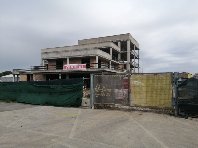 In origine il manufatto di 4 piani doveva appunto ospitare la nuova sede della Farmacia comunale, adesso spostata in via Aporti assieme agli uffici comunali dell'Anagrafe. Il contenzioso legale fu tra Azienda Farmacie e Unipol Sai, in quanto con quella compagnia era stata effettuata la fidejussione. Con il crollo del Consorzio Etruria, anche il cantiere dove in passato trovava posto la pista di pattinaggio venne abbandonato. La politica locale da anni tira in ballo il progetto dell'edificio a metà, tra rivendicazioni sovraniste e richieste in Consiglio comunale.