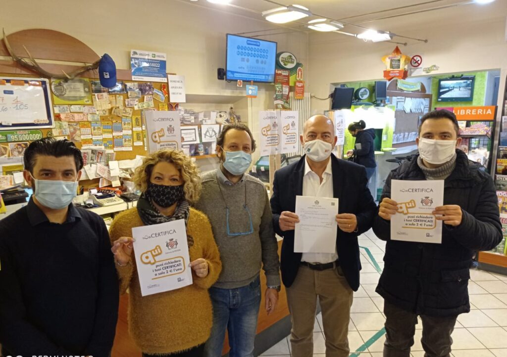 Il nuovo servizio è stato presentato questa mattina alla tabaccheria Pancani – Riv. 102 di Pistoia, una delle attività aderenti, alla presenza dell’assessore Alessandro Sabella, che è stato il primo cittadino a farsi rilasciare un certificato anagrafico in tabaccheria, Claudio Morbidelli presidente della Federazione Italiana Tabaccai a livello provinciale e il delegato territoriale STS Fausto Bolognini.