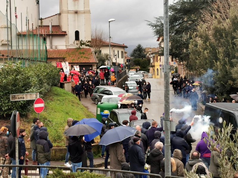 In moltissimi hanno partecipato ai funerali, che non si sono svolti all'interno della chiesa di San Michele Arcangelo ma sul retro. Per garantire il distanziamento e il rispetto delle norme anticontagio, centinaia di persone hanno detto addio a Stefano Masi nella piazzetta dietro alla chiesa. Amici e amiche, parenti, semplici conoscenti: c'erano tutti. I ragazzi dell'Amatori Staffoli avevano la tuta di rappresentanza, i volontari e le volontarie della Pubblica Assistenze erano presenti con la muta ufficiale.