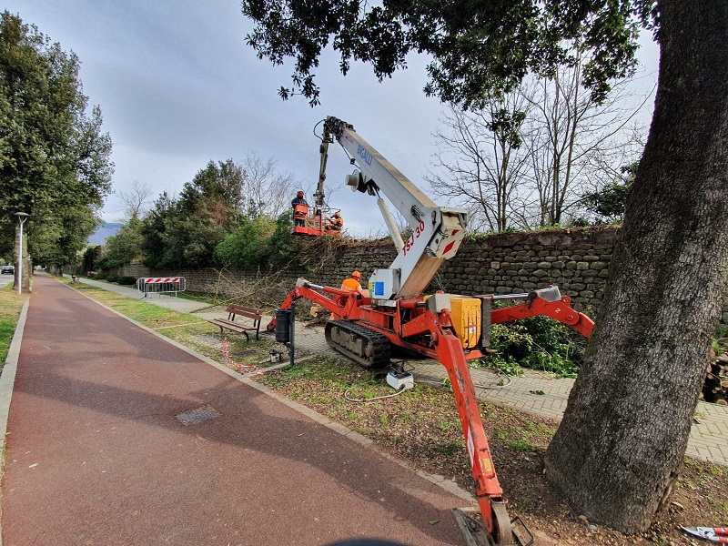 Il piano straordinario di pulizia del verde ha seguito gli interventi in somma urgenza avviati nei giorni successivi al crollo, avvenuto per il cedimento del “piede murario”. In quel caso, per mettere in sicurezza la porzione rimasta intatta ed evitare l’aggravarsi delle condizioni generali del manufatto, è stata rimossa una parte del muro e stabilizzate le parti maggiormente precarie. Sulle mura saranno poi installate strutture apposite, al fine di impedire azioni inattese delle mura dalla parte che dà sul torrente Brana.