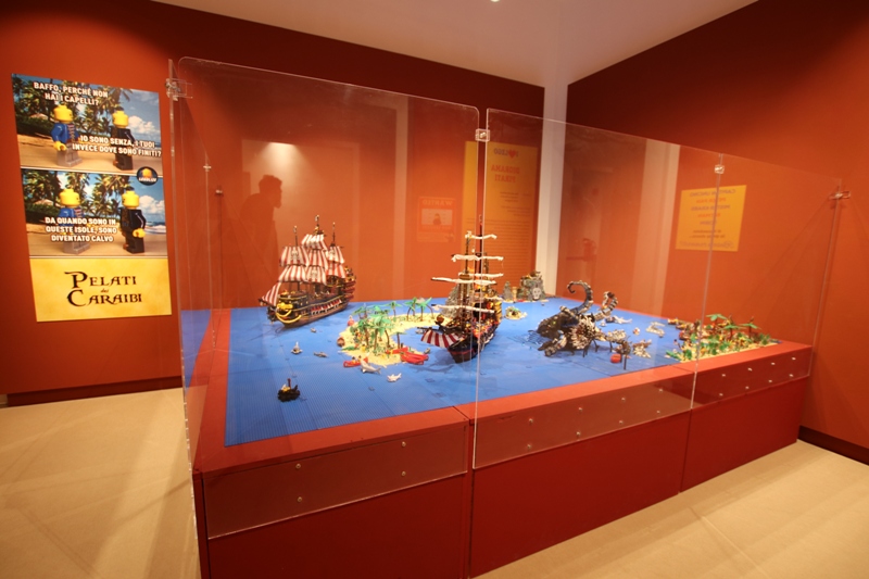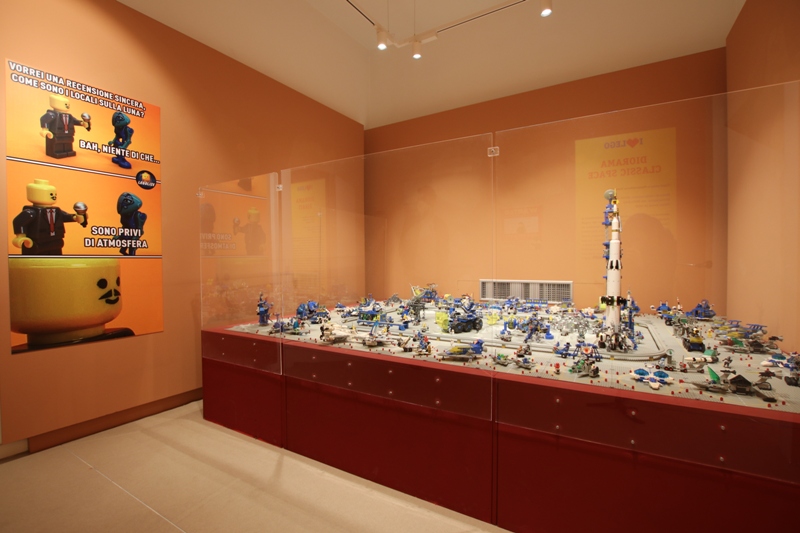 Sullo sfondo delle divertenti vignette si stagliano 6 diorami, costruiti con la collaborazione di un gruppo di appassionati e collezionisti. Giganti costruzioni si posizionano nelle sale, rappresentando con milioni di pezzi vari scenari e creando un viaggio magico per il visitatore, catapultato in un mondo in miniatura. Volare tra le luci dello spazio, navigare nei mari caraibici con i pirati o prendere il sole su uno yacht. O ancora, catapultarsi in un castello medievale, scalare una roccaforte immersa nella foresta per finire poi in una grande città, popolata di persone, traffico e altissimi grattacieli in continua espansione. Sembra impossibile ma è un itinerario, che tra i diorama della mostra, si può fare davvero osservando tutti i piccoli dettagli presenti.