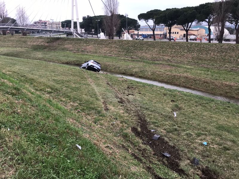 Il mezzo è uscito fuori strada là dove non ci sono barriere protettive, per andare a finire dritto dritto nel letto del torrente Orme, fortunatamente a secco in questo periodo. La scena è stata immortalata da alcuni passanti, pare che non ci si stato bisogno di trasferire nessuno al pronto soccorso. L'auto si è fermata a un certo punto, appena sotto la passerella pedonale che collega il quartiere di Serravalle con quello di Naiana.