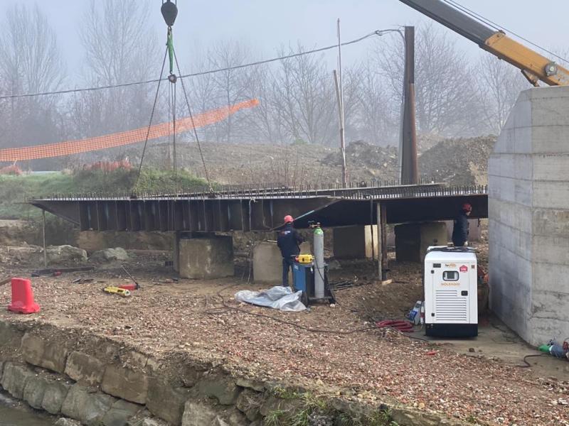 Ultimati gli interventi in via Di Vittorio, si potrà procedere con l’installazione della parte in acciaio corten del ponte della variantina, realizzata da un’officina campana e appena arrivata (in tre tranche) presso il cantiere comunale, dove sono in corso le operazioni di saldatura. Per l’innesto di questa parte di ponte, sarà necessario l’intervento di una gru.