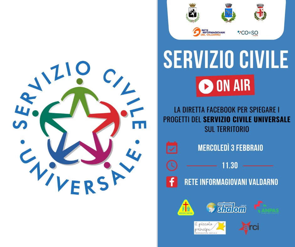 Servizio Civile On Air con la Rete Informagiovani del Valdarno: un incontro in diretta Facebook sulla pagina della Rete Informagiovani Valdarno per cogliere le opportunità del Servizio Civile Universale, tra formazione, crescita personale e sviluppo sociale.