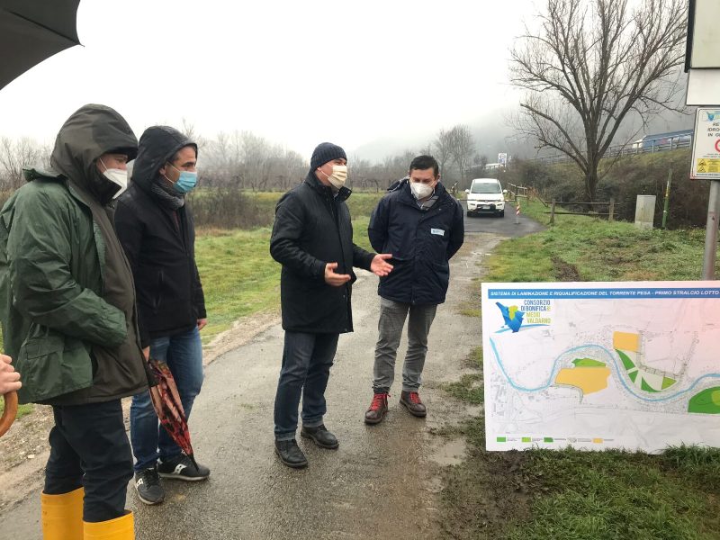 “ll sopralluogo sul cantiere della cassa di laminazione del Bramasole, conferma l’importanza che i lavori di messa in sicurezza del territorio vadano avanti e che sia garantito anche nel futuro un flusso costante di finanziamenti, anche grazie alle risorse del Recovery fund – dichiara l’Ing. Marssimo Lucchesi, ADB – Proprio su questo aspetto l’Autorità di distretto ha presentato a settembre scorso al Ministero dell’Ambiente una scheda progetto su infrastrutture verdi e interventi integrati win-win, previsti nei Piani di gestione, per un importo complessivo sull’intero territorio distrettuale pari a 100 milioni di euro. La cassa sulla Pesa – continua – è un esempio importante di misura win win: si tratta di un’opera fortemente condivisa sin dalle sue fasi iniziali con il Consorzio di Bonifica n.3 Medio Valdarno e che risponde agli obiettivi ambientali dei nuovi Piani di gestione delle acque e del rischio alluvioni adottati dall’Autorità di bacino a fine dicembre. In linea con quanto richiesto dall’Europa occorre continuare a puntare su misure e opere come questa, ossia su misure di rinaturalizzazione dei corsi d’acqua e di laminazione delle piene e sugli  strumenti di concertazione, quali i contratti di fiume, che ne favoriscono l’attuazione. Su questi temi l’impegno dell’Autorità sarà sempre forte e costante”.