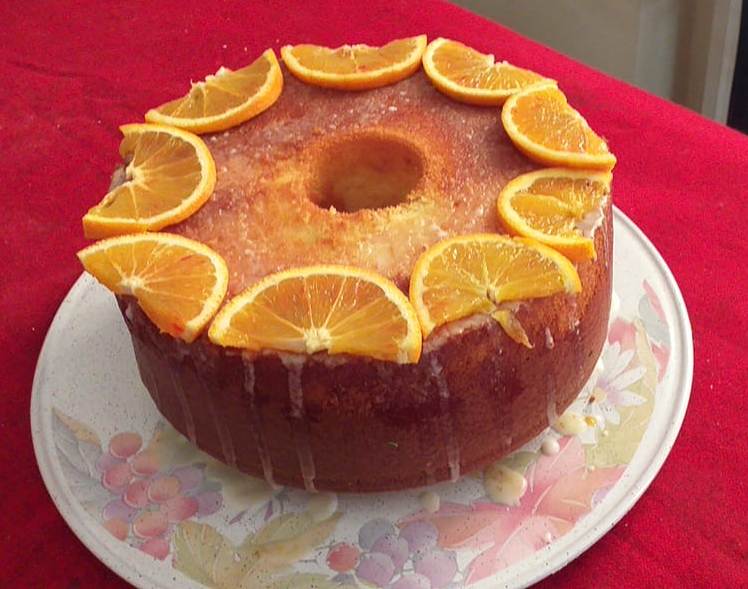 Per staccare il dolce ponete il coltello aderente alle pareti dello stampo e con cautela staccatelo. Se seguite la ricetta classica guarnite il dolce con lo zucchero a velo. Se invece lo avete fatto all'arancia come Mariela dovete preparare la glassa con lo zucchero a velo e il succo di arancia. Il succo di arancia aggiungetelo poco alla volta allo zucchero a velo e mischiate, in modo da vedere la consistenza che dovrà risultare cremosa. Fate attenzione a quando verserete la glassa sopra la Chiffon Cake, dovete versarla sul bordo della torta in modo che coli lungo i lati. Mariela ha finito di decorarla mettendo delle fette di arancia sul dolce. Per i più golosi Mariela suggerisce di preparare una ganasce al cioccolato. La foto è il risultato finale del suo Chiffon Cake.