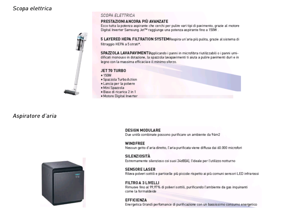 Per ogni cucina Aran completa di 4 elettrodomestici Samsung (sono validi anche quelli presenti nelle griglie o nei pacchetti Join Us) del valore minimo di 4.000 euro + iva (regolamento interno), potrai avere anche il quinto elettrodomestico a scelta fra: