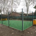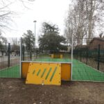 La recinzione ha caratteristiche dimensionali e costruttive tali da evitare al massimo la pericolosa fuoriuscita del pallone dall’area di gioco, considerato il frequente utilizzo del giardino da parte di bambini molto piccoli. Il nuovo impianto sportivo è infatti adatto a bambini di età fino agli otto anni circa e sarà fruibile negli stessi orari di apertura del giardino di Bellariva.