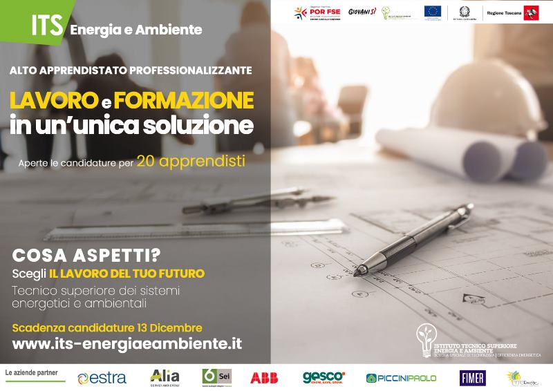 Scadono il 7 Febbraio i termini per l’invio della candidatura finalizzata ad un lavoro immediato nell’ambito dell’energia e dell’ambiente 4.0. 20 posti per 20 apprendisti che verranno assunti con contratto di apprendistato di alta formazione e ricerca da importanti imprese del settore energetico e ambientale. Un’iniziativa, realizzata grazie al contributo della Regione Toscana e Ministero del Lavoro, che offre ampie prospettive occupazionali per i giovani del territorio. I partecipanti, nella doppia veste di studenti/lavoratori, avvieranno un progetto lavorativo qualificante che sfocerà nel conseguimento di un titolo di studio riconosciuto a livello ministeriale, quello di “Tecnico superiore dei sistemi energetici e ambientali”.