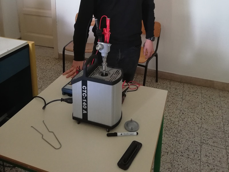 Durante la mattina la precedenza è data alle esperienze di laboratorio la cui parte teorica è già stata trattata in DAD: ad esempio la classe V ad Elettrotecnica ha iniziato le prove di caratterizzazione del trasformatore, a Sistemi le Prove di Caratterizzazione di una termoresistenza (PT100) mediante l’uso di un fornetto calibrato ed a TPSEE è iniziato il montaggio del sistema di Teleinversione di un motore asincrono trifase.