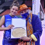 Nel terzo Bregoli lascia in campo Frantti per Perinelli, ma Il Bisonte continua a spingere e quando Alberti mette il muro del 6-3 Bregoli è subito costretto a chiamare time out: Nwakalor e Lazic mettono giù altri due grandi palloni (9-5), Bregoli spende subito il suo secondo time out ma non ferma l’emorragia (13-5), poi però un black out prolungato consiglia a Mencarelli di parlarci su (13-9). Chieri rimonta ancora chiudendo uno 0-6 per il 13-11, Guerra interrompe il parziale al termine di una lunghissima azione (14-11) e la stessa Guerra chiude uno scambio incredibile per il 17-13, con la difesa ancora protagonista: dall’altra parte serve ancora una volta la reazione di una super Grobelna per accorciare sul 18-17 e provocare il time out di Mencarelli, e la chiacchierata serve perché Nwakalor e Alberti ricreano un utilissimo + 5 (22-17), che però non basta ad evitare un nuovo tentativo di rimonta (22-20). Gli scambi si allungano incredibilmente, Cambi risolve con un fenomenale tocco di seconda (23-20), poi Nwakalor procura tre set point (24-21) e subito sul primo, con Hashimoto in battuta per Alberti, è Guerra a chiudere col murone del 25-21.