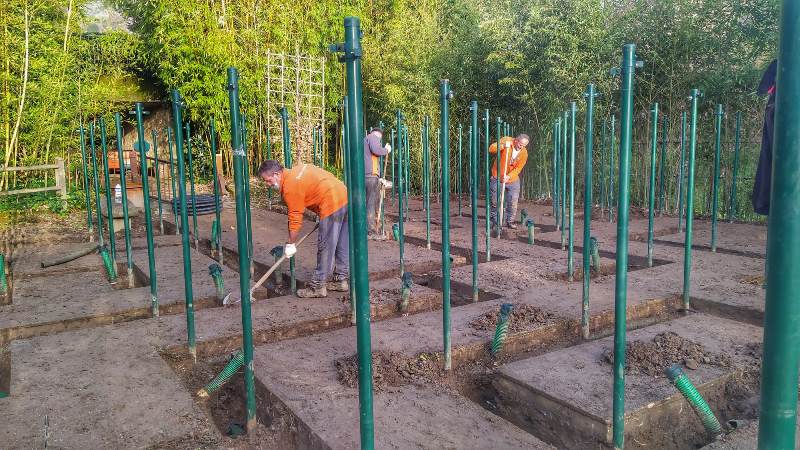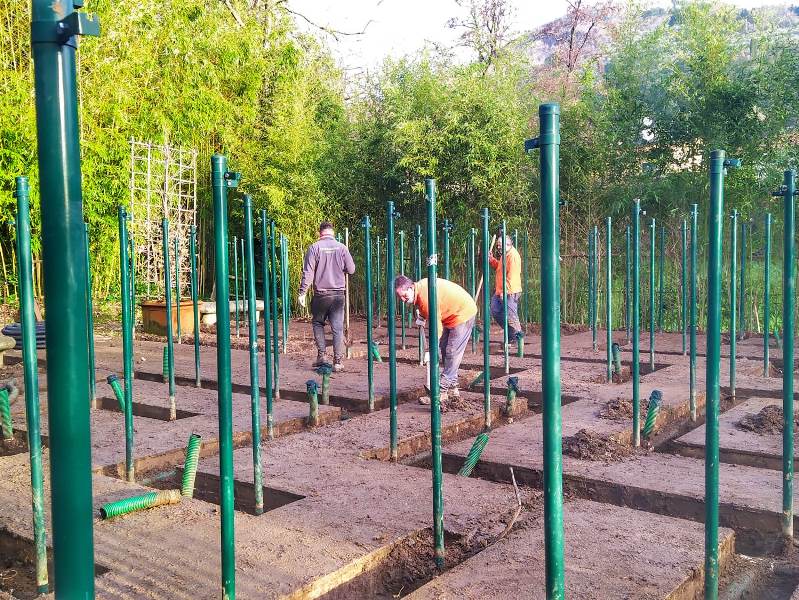 Sempre dalla relazione tecnica dell’architetto Anzilotti è precisato: “L’intervento è significativo, la pavimentazione è prevalente rispetto alla terra per il reimpianto, c’è da fare un lavoro minuzioso di scavo per creare le nuove condizioni di messa a dimora e restituire l’immagine e la funzionalità della realizzazione originaria con una rete con edera, capace di creare delle pareti continue per un percorso di scoperta. La realizzazione si concretizza con le seguenti opere: 1) lo smontaggio della recinzione esistente, lo scavo e smaltimento della terra attualmente presente; 2) la predisposizione di adeguato sottofondo drenante, il collegamento delle tubazioni drenanti, l’adeguamento della rete di smaltimento; 3) il riempimento con nuovo terriccio di coltura, il montaggio della recinzione esistente, - la fornitura e la messa a dimora di 600 piante di Hedera helix clt 3”.