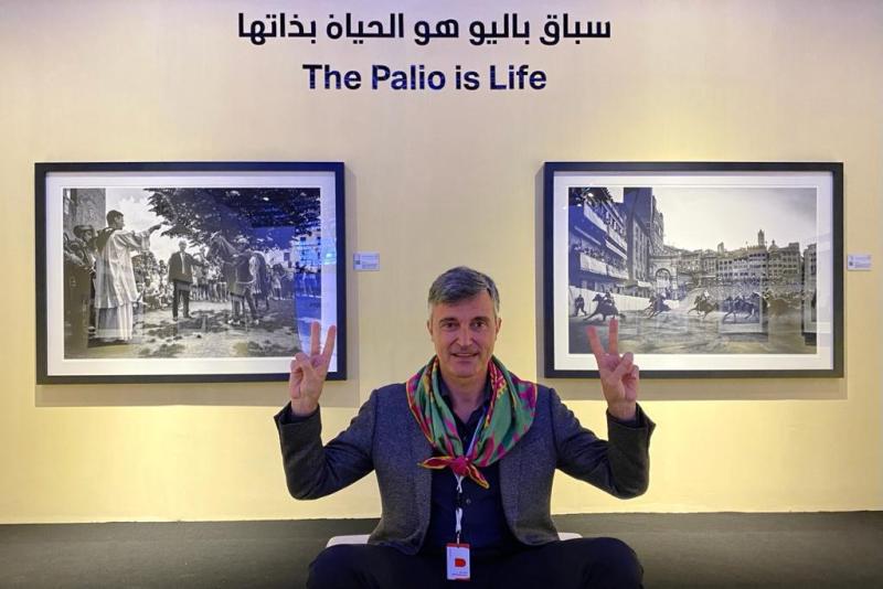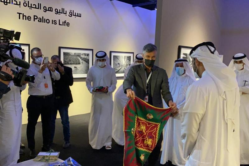 Dubai punta l’obiettivo della grande fotografia su Siena. Gli scatti del Palio firmati da Luca Venturi, fondatore e art director del festival Siena Awards, per il suo progetto “The Palio is Life” e una selezione di immagini del Siena International Photo Awards 2020 hanno aperto ieri, mercoledì 10 febbraio, Xposure, uno dei maggiori eventi internazionali dedicati alle arti visive in corso fino a sabato 13 febbraio a Dubai. Lo spazio dedicato a Siena e al SIPA 2020 è stato il primo a essere visitato dallo sceicco Mohammed Al Qasimi, promotore dell’evento, prima di fare tappa in tutte le altre esposizioni. In occasione della visita dello sceicco Mohammed Al Qasimi alla sua mostra personale e agli scatti del SIPA 2020, Luca Venturi, contradaiolo del Drago, lo ha omaggiato con il fazzoletto della sua Contrada.