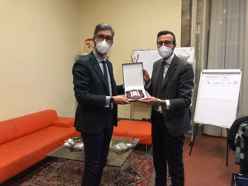 Il presidente della Provincia di Prato Francesco Puggelli ha ricevuto ieri pomeriggio (venerdi 12) a Palazzo Banci Buonamici il presidente del Consiglio regionale della Toscana, Antonio Mazzeo. Nel corso dell’incontro, a margine del quale Mazzeo ha potuto ammirare le storiche sale del Palazzo, Puggelli e Mazzeo hanno parlato del ruolo delle istituzioni locali e del rapporto tra l’ente Regione e la Provincia, anche alla luce della sinergia e della collaborazione istituzionale in vista dell’utilizzo dei fondi europei. “Tutta la partita del Recovery plan– ha commentato Puggelli – deve essere giocata in maniera proattiva anche dalle istituzioni locali ed è per questo che è fondamentale operare in sintonia e con grande spirito di collaborazione. Il dialogo constante è alla base di tutto questo.” Al termine dell’incontro Puggelli ha donato a Mazzeo alcuni volumi sulla storia di Prato, di Palazzo Banci e delle specialità tipiche locali.