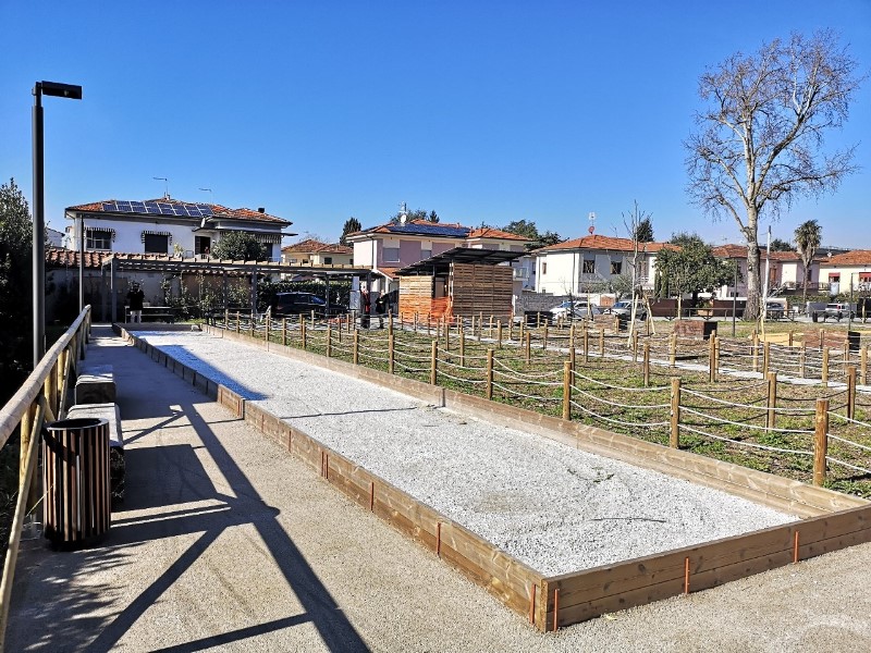 La parte collocata nella porzione più a sud del parco è stata invece suddivisa in 14 piccoli appezzamenti: si tratta degli orti pubblici, dove i cittadini che lo vorranno potranno cimentarsi con la coltivazione di verdura e frutta, chiedendone l'assegnazione. Per chi deciderà di lavorare un piccolo orto saranno a disposizione sia l’acqua per irrigarlo che uno spazio per il ricovero degli attrezzi. Adiacente agli orti, completa la dotazione del parco un campo da bocce.