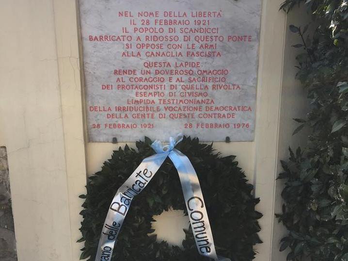 Il 28 febbraio 2021 Scandicci celebra il centesimo anniversario delle Barricate. Nella stessa data del 1921, infatti, presso il ponte sulla Greve i cittadini eressero le Barricate, contro l’imminente attacco delle squadre fasciste che avevano assassinato il sindacalista Spartaco Lavagnini.