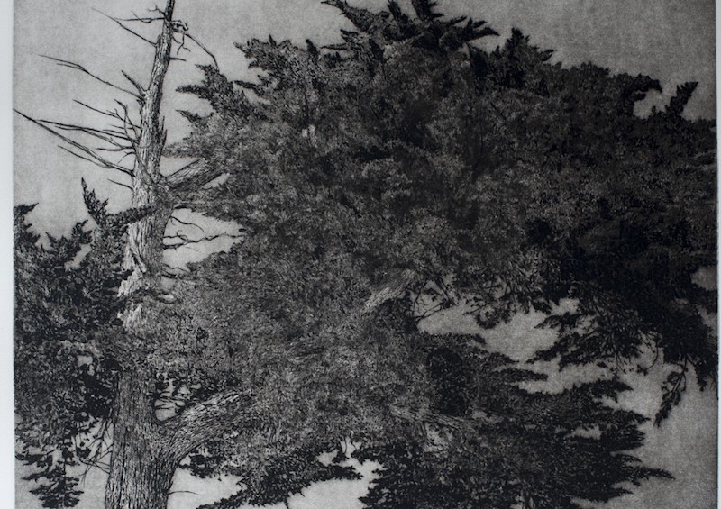 - La cipressa ferita, 2008, esemplare 25/40- acquaforte e acquatinta e bulino mm 587x516, foglio cm 70x59,5