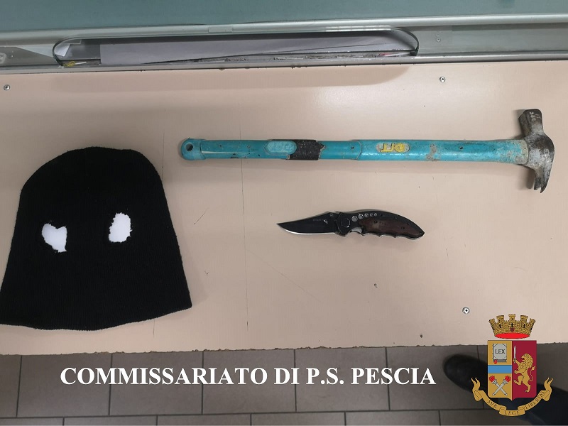 Stava tentando di rubare in uno dei veicoli nella sede della Croce Rossa Italiana a Buggiano, ma una volante della polizia che passava di lì lo ha notato e dopo un breve tentativo di fuga lo ha arrestato. È accaduto nella notte di mercoledì. La volante, transitando in via della Stazione a Buggiano, ha sentito il rumore di un vetro che veniva infranto e subito dopo ha notato l'uomo, con il volto coperto da un passamontagna che si dava alla fuga salendo velocemente su un’auto. L'uomo è stato però bloccato poco dopo. Nell'auto aveva un martello da carpentiere e il passamontagna utilizzato poco prima, oltre un coltello a serramanico occultato nel vano porta oggetti. È stato danneggiato il finestrino di un Fiat Doblò dell'associazione, usato anche per il trasporto dei disabili.