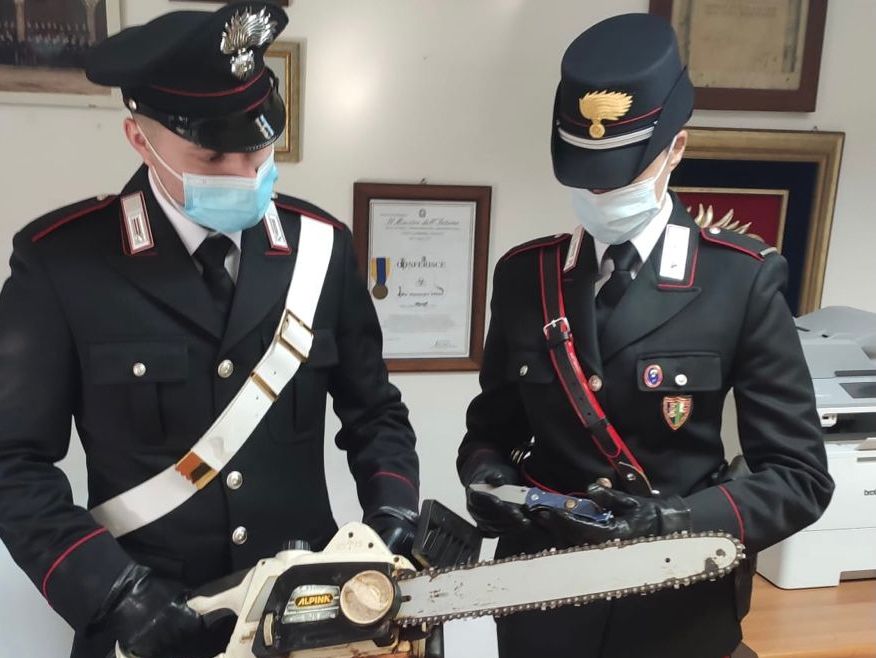 L’uomo, già denunciato dalla moglie per fatti analoghi, nella mattinata di sabato aveva minacciato con una motosega, successivamente sequestrata dai militari unitamente ad un coltello occultato nei pantaloni, la consorte 52enne e, all’arrivo dei militari, aveva continuato a dare sfogo alle proprie intemperanze tanto da dover essere sottoposto a trattamento sanitario obbligatorio.