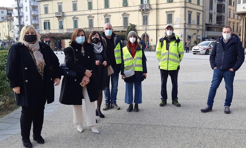 Una passeggiata lungo Corso Italia fino a piazza Vittorio Emanuele e dintorni per ringraziare gli operatori dell’unità di strada di Progetto Homeless. Erano presenti l’assessore alle politiche sociali e presidente della Società della Salute, Gianna Gambaccini e le consigliere comunali, Brunella Barbuti e Veronica Poli, e il coordinatore delle Uds, Renato Petrone, della cooperativa Arnera. Il servizio, iniziato nell’ottobre scorso, consiste di due unità, una impegnata nei quartieri della città e l’altra in centro, nell’area tra i loggiati delle Poste, del palazzo della Provincia e della Camera di Commercio ma anche in viale Gramsci, piazzetta Haring e nel primo tratto di Corso Italia.