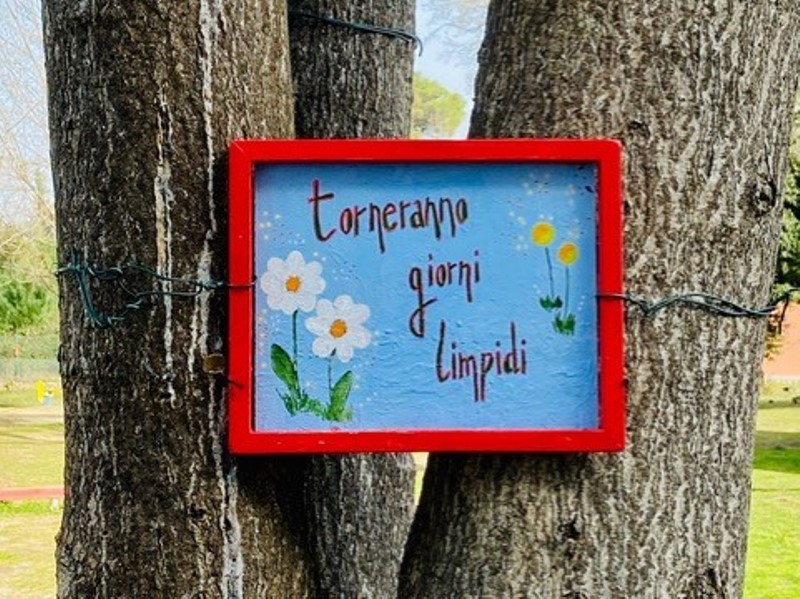 Cosa vi ha spinti a queste stupende creazioni? “In un parco come il nostro, dove le persone si trovano a trascorrere l’attesa tra una visita e l’altra, ovvero un’esperienza di dolore, di sofferenza, anche di smarrimento, pensiamo possa dare sollievo posare gli occhi sulla vivacità espressa dalle opere affisse sugli alberi del parco, come simbolo della vita che va avanti comunque, mano nella mano con la cultura e l’arte, quali antidoti fondamentali contro le avversità, a favore della speranza e della positività”. E come scrivono nei messaggi disseminati nel Parco: “Torneranno giorni lieti”.