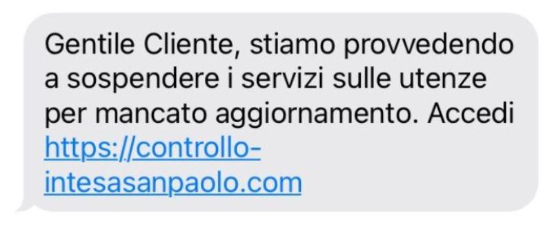 Nel messaggio c'è scritto: "Gentile Cliente, stiamo provvedendo a sospendere i servizi sulle utenze per mancato aggiornamento". Invita ad accedere a un link che ha tutto l'aspetto di quello che normalmente invia la banca.