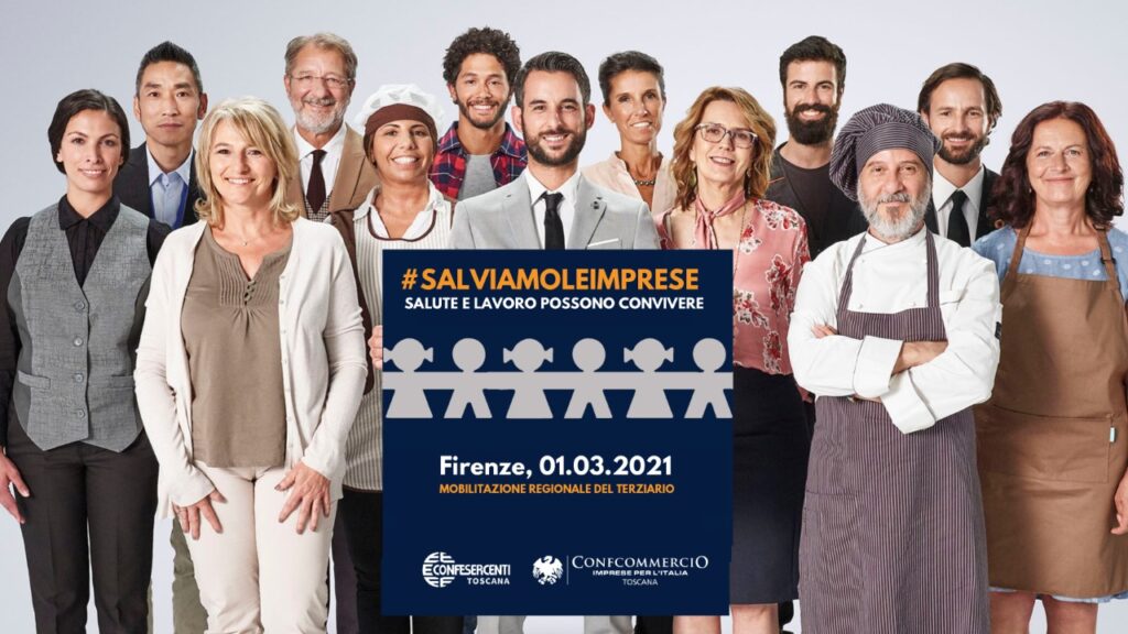 La manifestazione, organizzata a livello regionale da Confcommercio Toscana e Confesercenti Toscana, sarà declinata in contemporanea in undici città toscane, lunedì prossimo dalle ore 11. Oltre a Firenze, saranno coinvolte anche Arezzo, Grosseto, Massa, Livorno, Lucca, Pisa, Pistoia, Prato, Siena e Viareggio. “In ogni città, le nostre associazioni di categoria hanno chiesto e ottenuto il benestare della Prefettura per lo svolgimento dell’iniziativa, che sarà comunque ordinata, silenziosa e statica, rispettosa delle distanze di sicurezza”, ci tengono a sottolineare Confcommercio e Confesercenti.