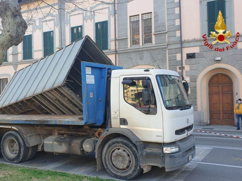 Questo pomeriggio a Livorno, un camion urtando un albero ha perso il proprio carico, coinvolgendo un'auto che transitava. È successo in piazza Mazzini dove è in corso l'intervento dei vigili del fuoco. L'incidente non ha provocato feriti.
