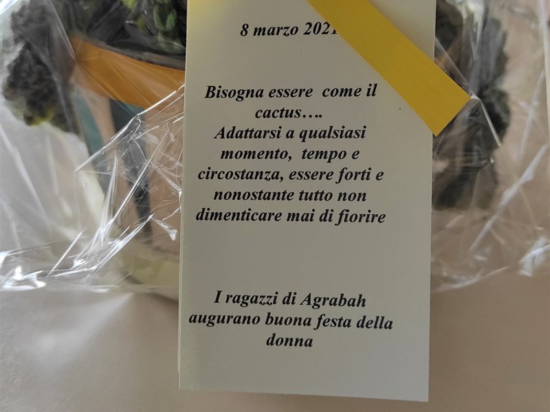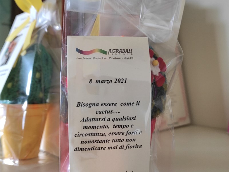 Un messaggio simbolico e profondo accompagna un’iniziativa che segna la prosecuzione, nonostante le difficoltà del periodo, del sodalizio tra Agrabah (associazione genitori per l’autismo) e la sezione soci Coop di Pistoia. Quest’ultima, infatti, per l’8 marzo donerà alle dipendenti del supermercato di viale Adua un omaggio realizzato dai ragazzi della Casa di Gello per l’età adulta insieme a genitori e operatori. I doni consistono in alcuni cactus fioriti realizzati in lana e altra stoffa, confezionati all’interno di vasi colorati. Il biglietto di auguri che li accompagna è un invito a essere come i cactus, che si adattano a ogni circostanza senza mai dimenticarsi di fiorire.