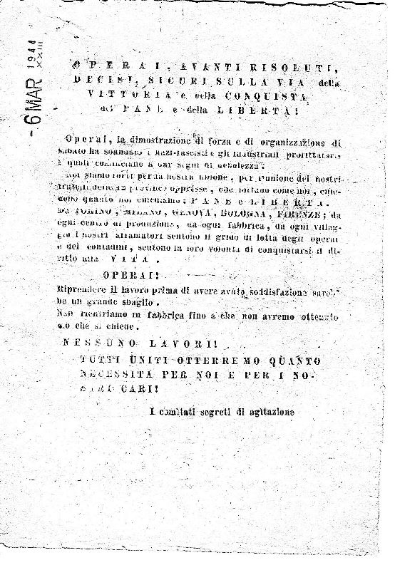 Fermavano tutti quel mattino di marzo… Siamo nel marzo del 1944, nei giorni dello sciopero generale, di dimensioni impressionanti, proclamato nell’Italia centro-settentrionale in piena occupazione nazista con le parole d’ordine pane, pace, lavoro e libertà. Lo sciopero purtroppo aprì le porte dei lager a migliaia di deportati per motivi politici, operai e militanti antifascisti, ma anche persone che non avevano niente a che fare con la protesta, rastrellate per rappresaglia e per ingrossare le fila di uomini e donne in grado di lavorare come schiavi a favore dell’industria bellica tedesca.