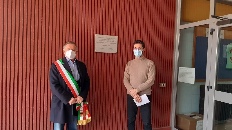 È stata svelata questa mattina alla presenza del Sindaco Riccardo Prestini, del Dirigente Scolastico Giuseppe Tito e di alcuni alunni.