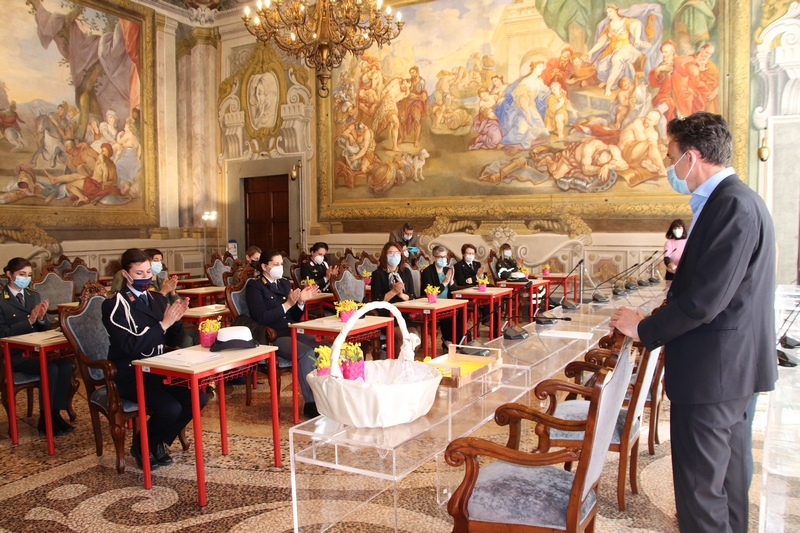 Intensa giornata e ricca di iniziative, l’8 marzo è iniziato in Comune con la consegna alle dipendenti del Comune di un mazzetto di mimose intrecciate a due spighe di grano, accompagnate da una piccola pergamena dedicata “ai diritti delle donne”. Poi, è stata la volta della consegna, in sala delle Baleari, della mimosa alle donne in uniforme, delle Forze dell’ordine ma anche dottoresse e infermiere, categorie che si sono distinte in questa fase dell’emergenza sanitaria.
