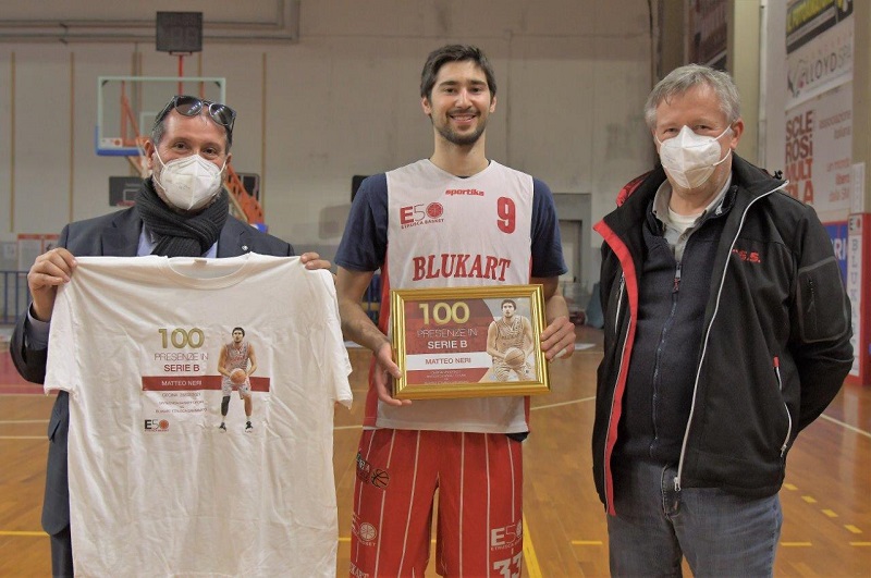 Con la gara giocata sul campo di Cecina domenica scorsa, Matteo Neri ha raggiunto l'importante traguardo delle 100 presenze in maglia biancorossa, diventando così, nonostante la giovanissima età, uno dei veterani della squadra di coach Barsotti e un'importante colonna per tutta l'Etrusca. Ironia della sorte, proprio nella gara in cui ha raggiunto le 100 presenze in maglia biancorossa è riuscito a siglare il centesimo punto, nella bella vittoria sul campo di Cecina. Il presidente della società Alberto Parrini ha premiato Matteo per il raggiungimento di questo importante traguardo, segno di grande attaccamento alla maglia, professionalità e abnegazione, le caratteristiche perfette per un giocatore Etrusca, con l'augurio di continuare a giocare e vincere insieme ancora tante partite. 100 volte grazie Blacks!!!