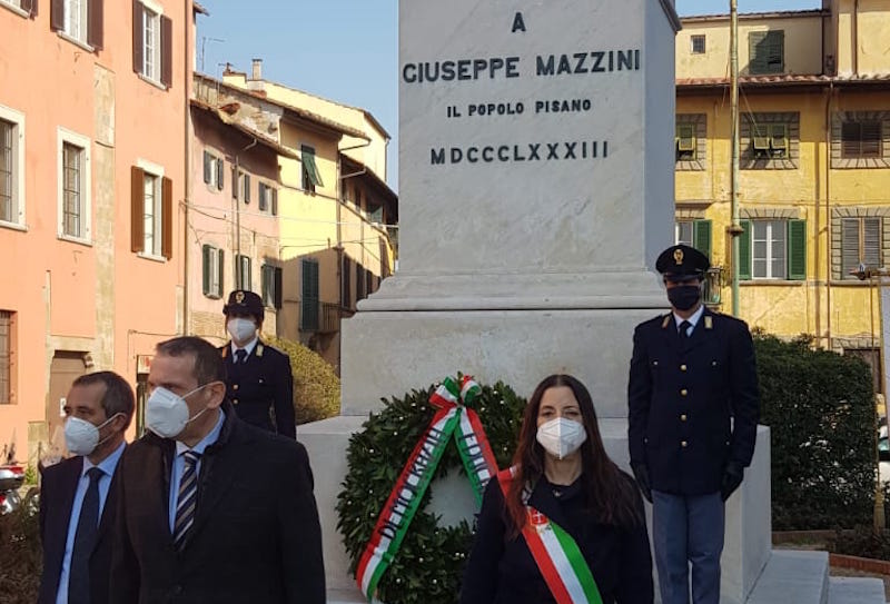 Questa mattina, 10 marzo, in occasione del 149° anniversario della morte di Giuseppe Mazzini, avvenuta nella nostra Città il 10 marzo 1872, la comunità pisana ha reso omaggio all’eroe del Risorgimento, deponendo una corona di alloro alla base del monumento eretto, nel 1883, nell'omonima piazza, davanti alla sede della Prefettura. Per l’amministrazione comunale era presente la vicesindaco Raffaella Bonsangue.
