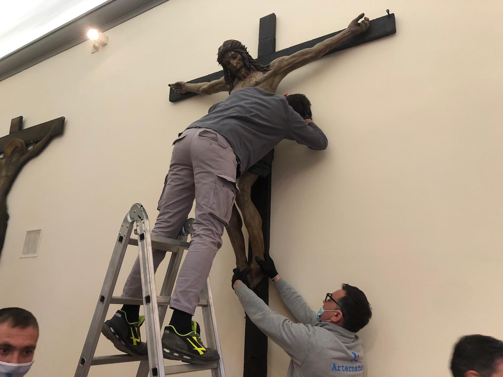“Il Crocifisso era in cattivo stato di conservazione e attaccato da insetti xilofagi” racconta la restauratrice Anna Fulimeni. “Gli alluci e l'anulare della mano destra erano rotti. Nei capelli, intagliati dallo scultore con grande eleganza plastica, si notavano distacchi di porzioni lignee. E una stesura di vernice nera copriva i colori originari”.