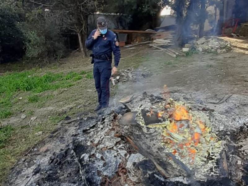 I Militari hanno accertato che nell’area oggetto della combustione era attivo un fuoco dove erano ancora visibili parti parzialmente combuste di mobilia rivestita in formica. Vicino al braciere era presente un vecchio mobile e dalla verifica e ispezione dei luoghi erano evidenti lavori di sgombero e ripulitura di un magazzino in uso alla persona identificata.