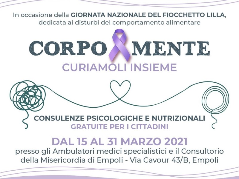 Per fornire assistenza a coloro che soffrono di queste patologie e ai loro familiari, la Misericordia di Empoli ha organizzato l’iniziativa “Corpo & Mente. Curiamoli insieme”, offrendo consulenze psicologiche e nutrizionali gratuite alla cittadinanza.