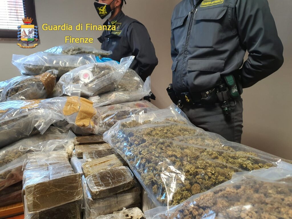 I finanzieri di Firenze hanno arrestato un italiano che deteneva, all’interno di un appartamento a Fiesole (FI), 106 kg di hashish, 29 kg di marijuana e quasi 11 mila euro in contanti, presumibile profitto di spaccio di sostanze stupefacenti.