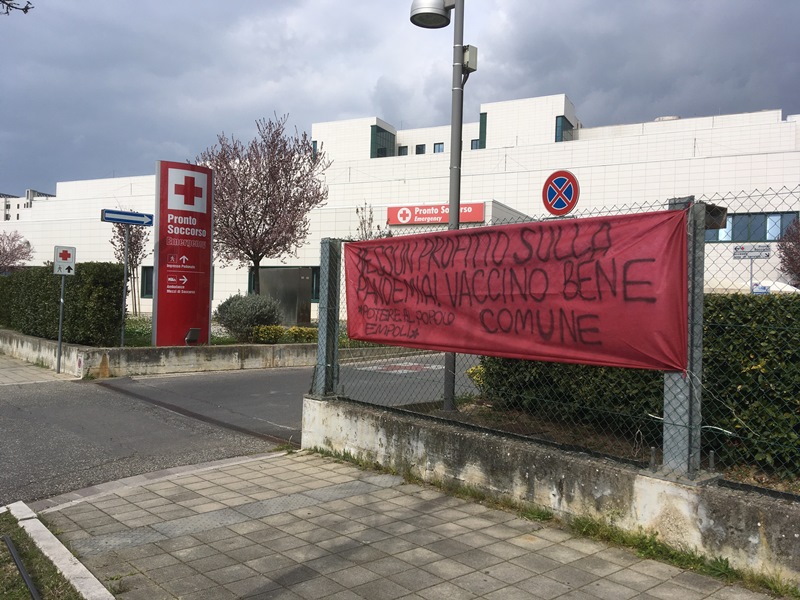 Sul territorio Potere al Popolo Empolese Valdelsa ha deciso di partecipare alla giornata di mobilitazione con uno striscione attaccato di fronte all’ingresso del Pronto Soccorso dell’ospedale San Giuseppe di Empoli. «Nessun profitto sulla pandemia! Vaccino Bene Comune!» è il testo dello striscione, che racchiude la nostra posizione e quella della campagna intrenazionale No Profit On Pandemic.