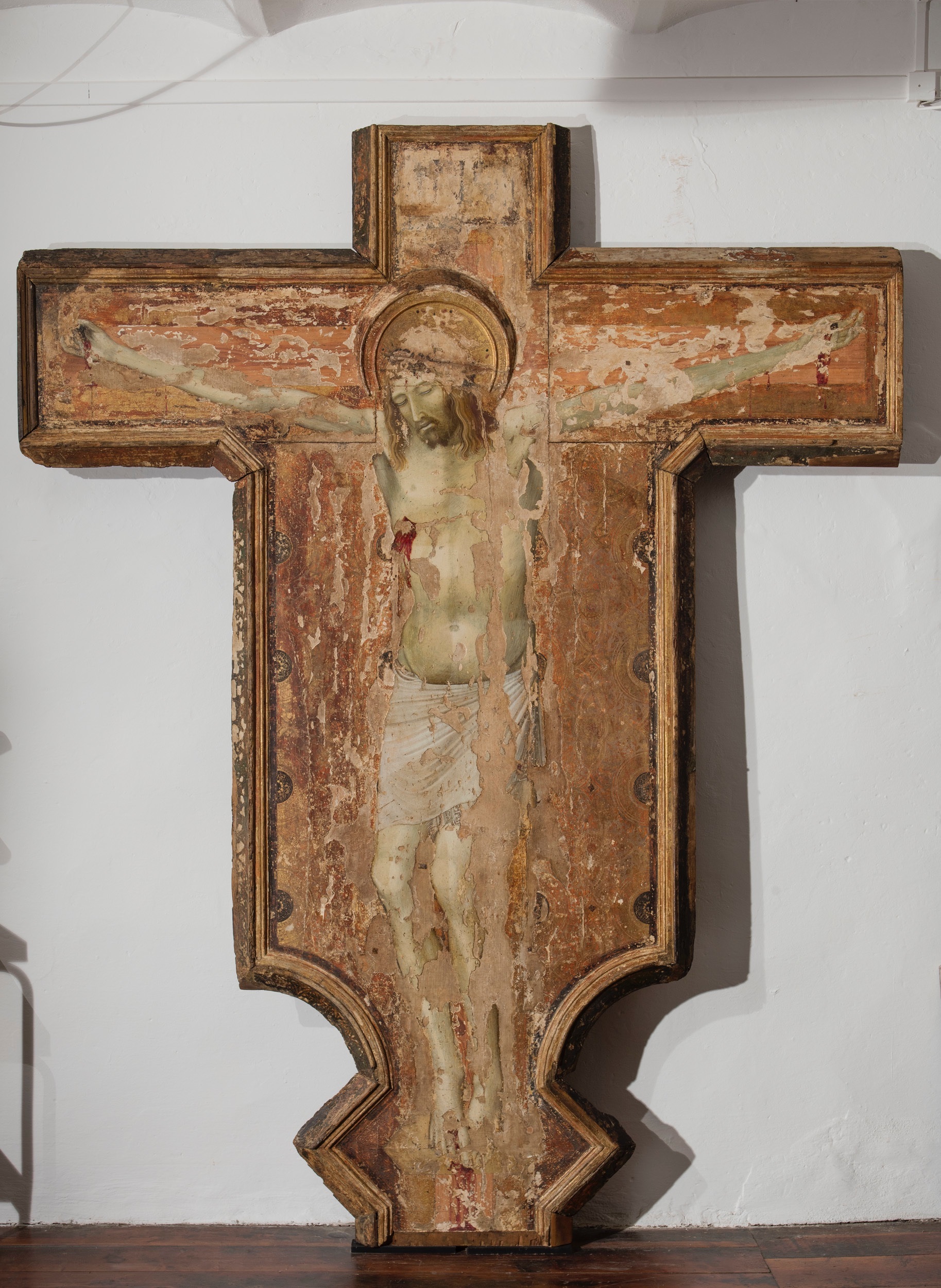 Durante l'Ottocento le infiltrazioni di acque piovane all'interno del Convento del Carmine a Siena provocarono all’opera notevoli ed estese cadute di colore, risparmiando però il volto del Cristo che rimase protetto dall'aureola aggettante rispetto al livello della croce.
