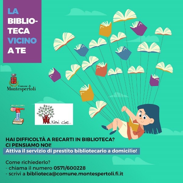 Riparte il servizio di prestito a domicilio di libri, CD e DVD promosso dal Comune di Montespertoli in collaborazione con la Biblioteca comunale E. Balducci e con l’Associazione culturale “Noi Che..”. In un periodo in cui le attività quotidiane sono rese più difficili dalla pandemia in atto, il Comune di Montespertoli permette a tutte le cittadine e i cittadini in difficoltà di accedere ad un servizio culturale essenziale. I lettori e le lettrici di ogni età non autosufficienti, con disabilità o impossibilitati, anche soltanto temporaneamente, a recarsi in Biblioteca potranno contattarla e ricevere gratuitamente e direttamente a casa propria il libro desiderato. Il servizio di consegna e ritiro, svolto dai volontari dell’Associazione culturale “Noi Che..” sarà attivo una volta alla settimana a partire dal mese di marzo. “Si tratta di un’iniziativa importante per combattere l’isolamento e tenere viva la voglia di scoprire, curiosare e viaggiare attraverso i libri ed i film. Un ringraziamento speciale va all’Associazione culturale “Noi Che..” che si è subito proposta per portare avanti insieme all’Amministrazione questo progetto” dichiara Alessandra De Toffoli, Assessore alla Cultura. Per attivare il servizio e richiedere il materiale è necessario contattare la Biblioteca al numero 0571/600228 oppure mandare una mail a biblioteca@comune.montespertoli.fi.it. Lo Staff della Biblioteca fornirà tutte le informazioni necessarie, concordando orario e modalità. È possibile verificare da casa la disponibilità dei materiali da prendere in prestito collegandosi al catalogo online (http://reanet.comperio.it).