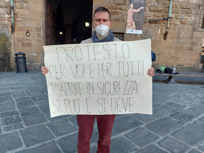 Il consigliere, munito di due cartelli, spiega la protesta: “Un modo per sensibilizzare le istituzioni e l’opinione pubblica a lavorare velocemente per far riaprire le attività commerciali, nel pieno rispetto delle attuali norme di sicurezza, per non far finire presto tutti a “pane e acqua”. Una protesta silenziosa – aggiunge il consigliere Andrea Asciuti – perché sono convinto che non si sia fatto ancora tutto quel che si doveva fare per aiutare i commercianti, una categoria che è stata colpita duramente dalla pandemia e che è stata dimenticata. Dopo un anno si sono registrate tante chiusure, anche a Firenze. Occorre favorire le riaperture, in sicurezza, per far ripartire un settore importante per la città e che rischia seriamente di sparire”.