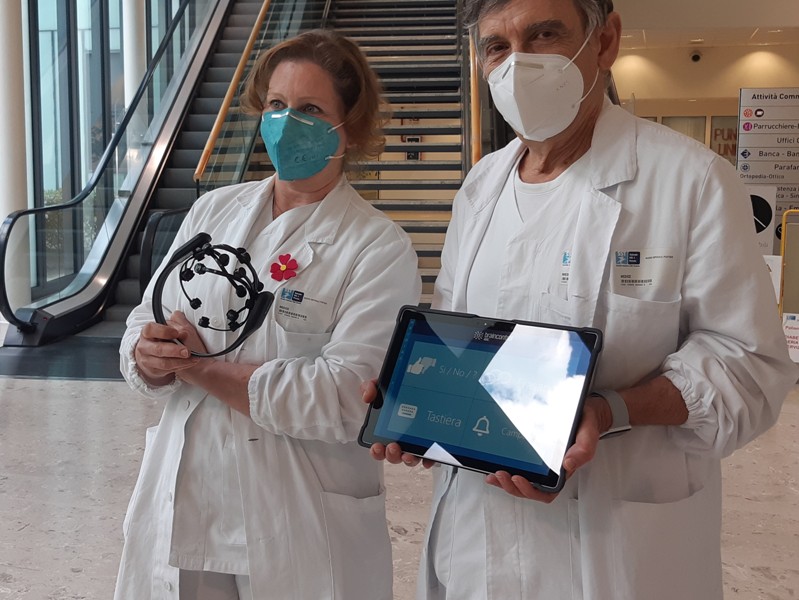 Nella sostanza si tratta di un’ interfaccia cervello computer che ai pazienti malati di SLA cosiddetti locked in, in uno stato avanzato della disabilità, consente di tradurre i segnali del sistema nervoso centrale in parole e azioni. Il sistema permette quindi di superare le disabilità motorie e comunicative.